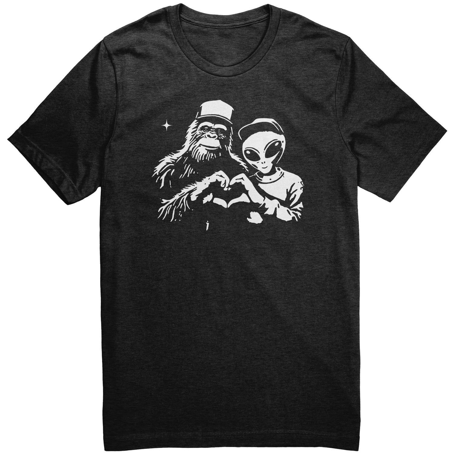 Bigfoot & Alien Heart Hands Love Unisex T-Shirt